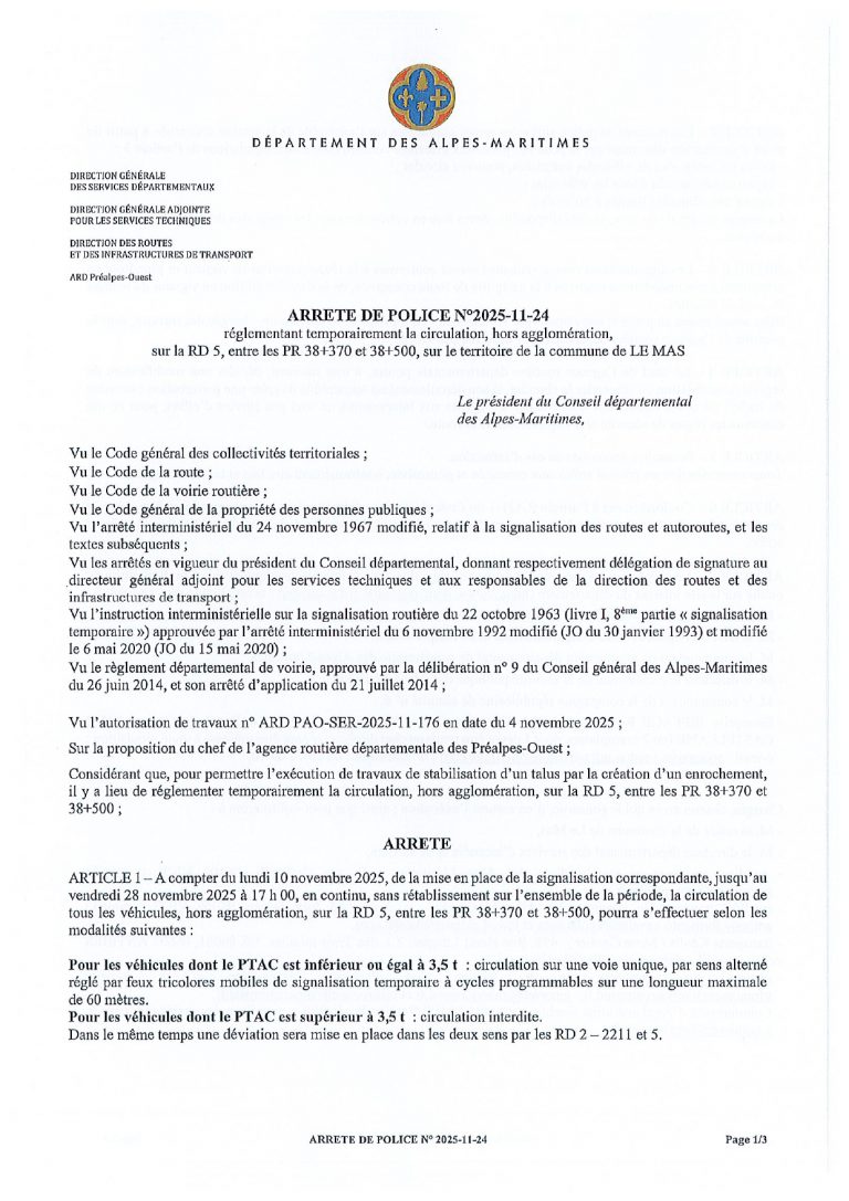 Arrêté de police N°2025-11-24