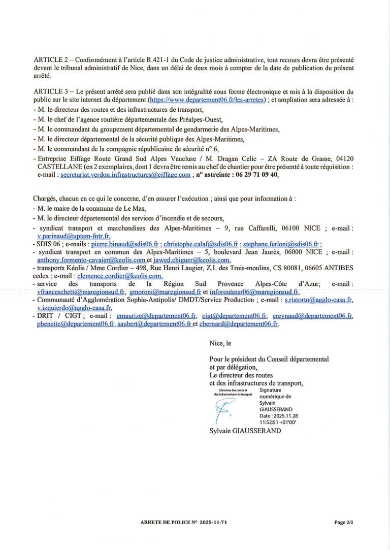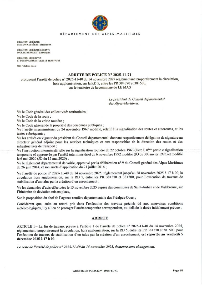 Le Mas » Actualités » Arrêté de police N°2025-11-71 – Report fin des travaux sur la RD5 au Vendredi 5 décembre 17h
